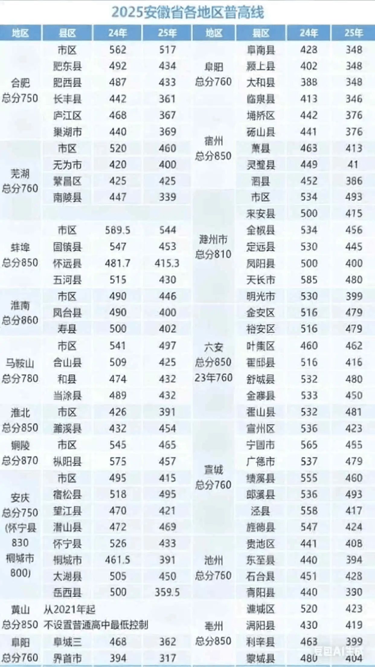 市区与四县一市实行“属地招生”,户口迁至长丰、肥西等周边县区可享受更低录取分数线(如长丰县普高线分以上)。